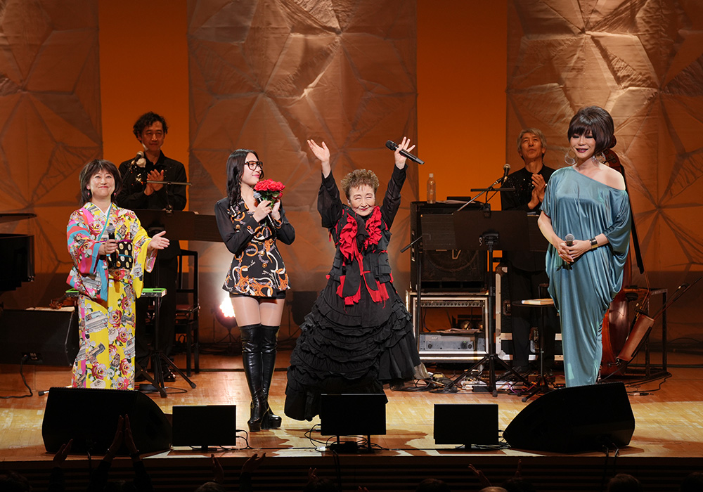 中尾ミエさんによる乾杯に続き、スペシャルステージでは加藤登紀子さんが登場(ピアノ:五条院凌さん)。昭和・平成・令和と歌い継がれてきた名曲たちが会場を包み込み、まさに「昭和音楽祭シリーズ」の精神である「文化の継承」を象徴する、感動的なひとときとなりました。