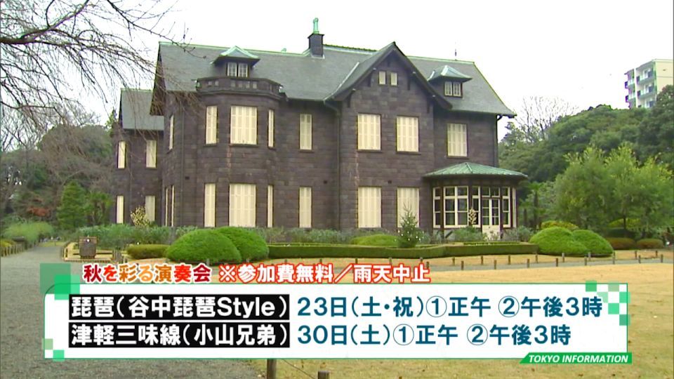 23日と30日の土曜日には、洋館前の芝生広場で秋を彩る演奏会が開かれます。