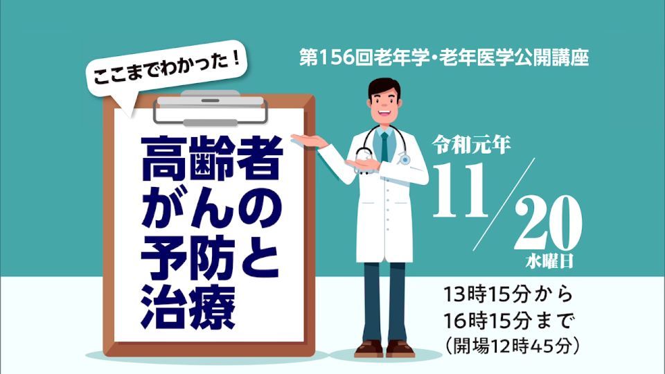 今回で156回目の老年学・老年医学公開講座は「ここまでわかった!高齢者がんの予防と治療」がテーマです。