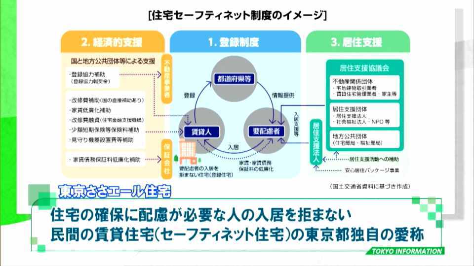 「東京ささエール住宅」は、住宅の確保に配慮が必要な人の入居を拒まない民間の賃貸住宅、セーフティネット住宅の東京都独自の愛称です。