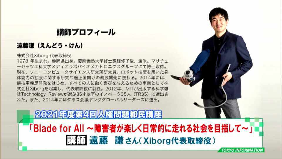 今年度、第4回目となる、今回の人権問題都民講座「Blade for All 障害者が楽しく日常的に走れる社会を目指して」は、世界中の下肢切断者が普通に走ることができる社会を目指すアクション「Blade for All」に取り組む講師とともに、今、我々に何ができるかを考えてみたいというものです。