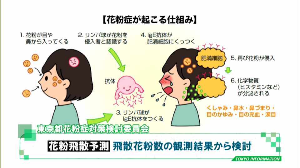 花粉が多いとされる日数は、区部で32日程度、多摩地域で38日程度となり、去年と比べて多くなる見込みだということです。