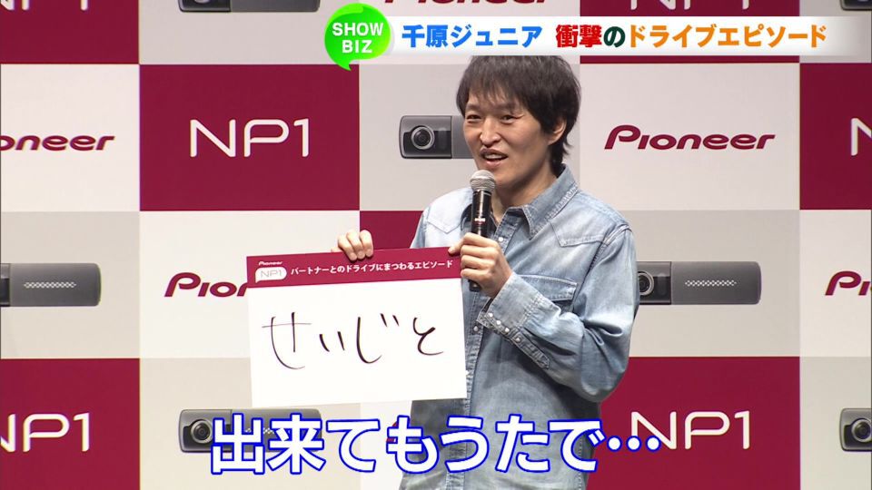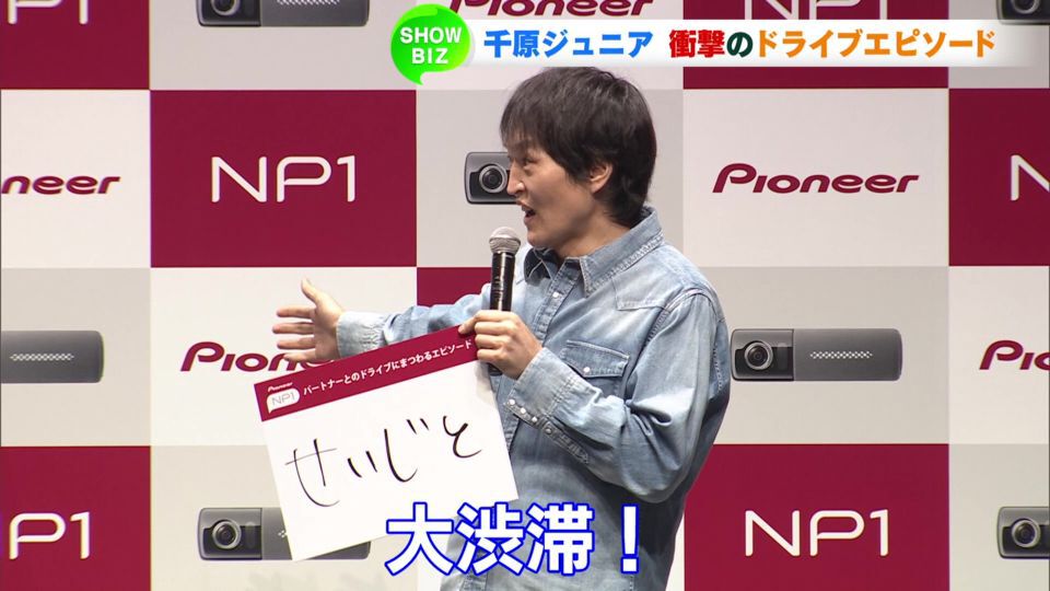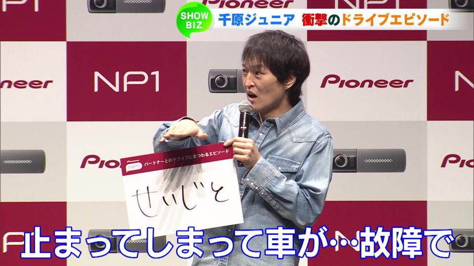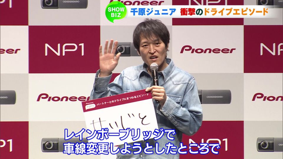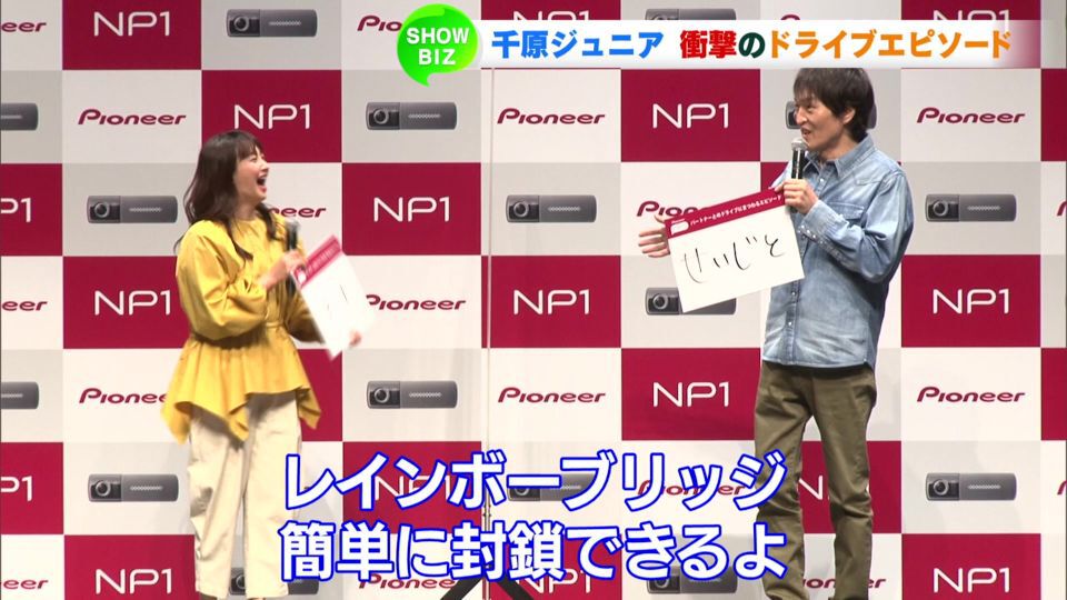 カーナビで有名な電機メーカーの新事業・新商品発表会が行われ、車好きな千原ジュニアさんと藤本美貴さんが出席しました。