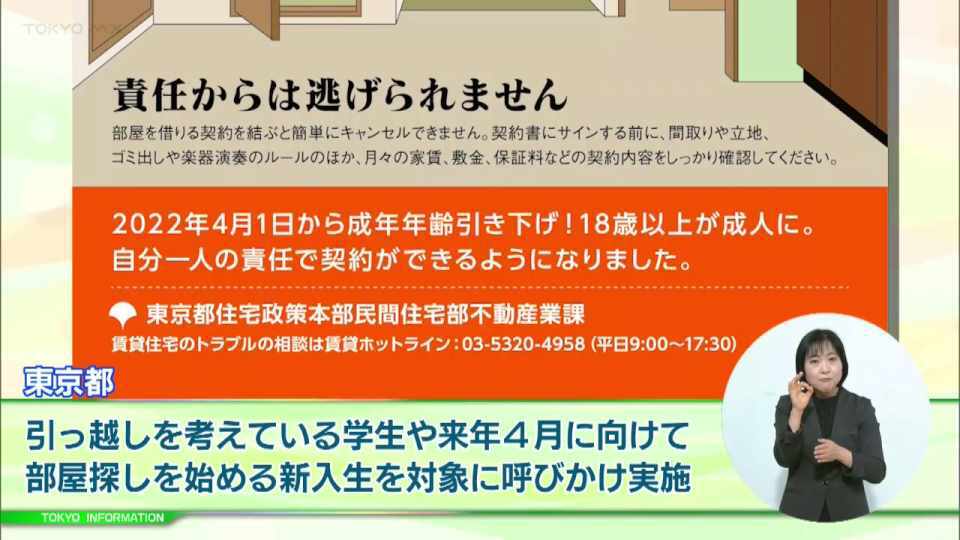 都では、不動産取引のトラブルを未然に防ぐため、住宅政策本部のウェブサイトに啓発広告を掲載するなど、引っ越しを考えている学生や、来年4月に向けて部屋探しを始める新入生を対象に、呼びかけを実施しています。