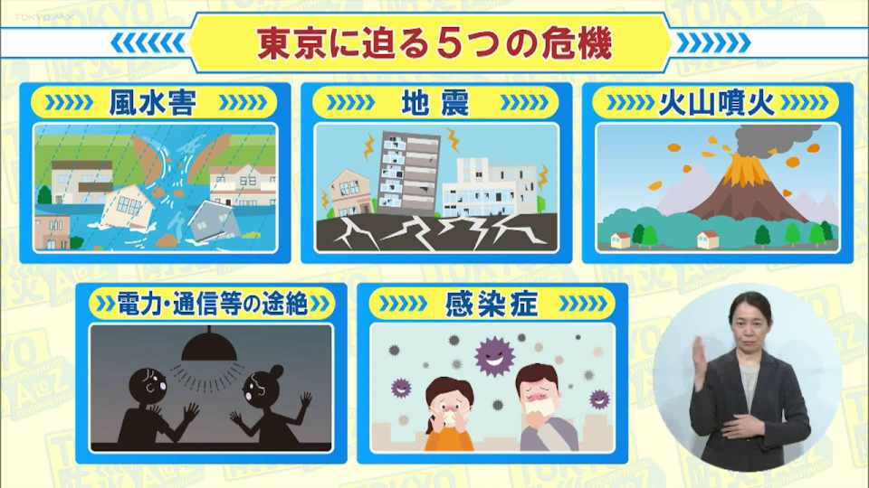頻発する自然災害に備え、東京都が想定する五つの危機。