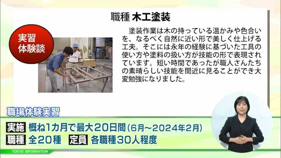 今回は都が開設した家庭と仕事の両立やキャリアチェンジなどさまざまな相談に応えるウェブサイト「女性しごと応援ナビ」についてや、学生から34歳以下のおとなまでものづくりに関心がある人が直接職人から指導を受けられる「職人塾」参加者募集を紹介しました。