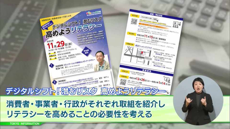 「デジタルシフト! 潜むリスク 高めようリテラシー」は、消費者・事業者・行政がそれぞれの立場の取組を紹介し、リテラシーを高めることの必要性を考えるために開かれます。