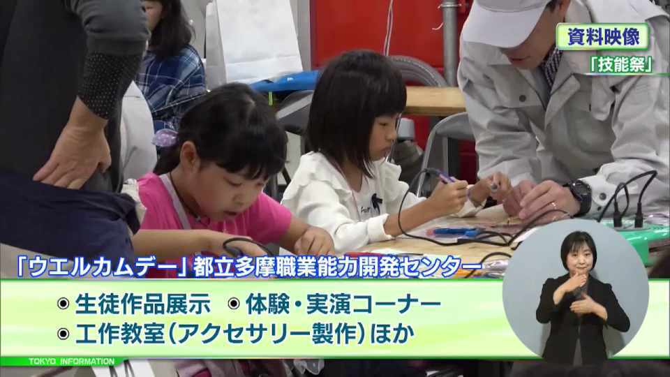 都立多摩職業能力開発センターでは、生徒の作品展示のほか、アクセサリー製作などの工作教室が開かれます。