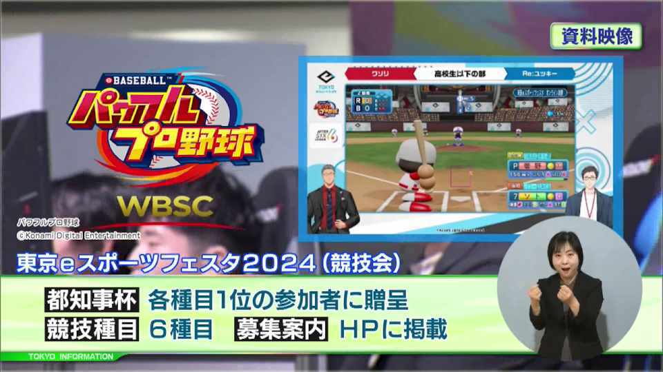 「都知事杯」を競う競技大会は、「WBSC eBASEBALLパワフルプロ野球」「グランツーリスモ7」「太鼓の達人 ドンダフルフェスティバル」「パズドラ」「ぷよぷよeスポーツ」「モンスターストライク」の6種目で行われます。