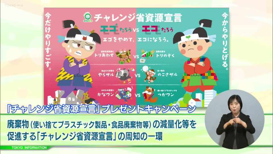 このキャンペーンは、使い捨てプラスチック製品、容器包装、食品廃棄物の減量化やリサイクル促進のための「チャレンジ省資源宣言」を広く知ってもらうために行われています。