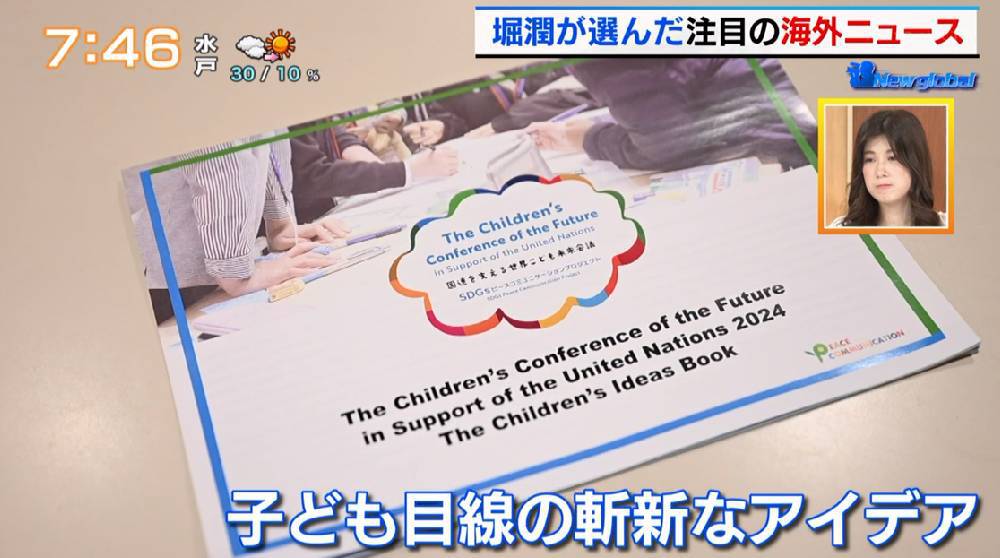 堀は「この1年間、国内外の子どもたちが集まり、世界を平和にするために、より良い世界にするためにどうすれば良いか話し合ってきました。そのアイデアが集まった政策集には環境、人権、さまざまなテーマで皆さんのアイデアが集まっています」と説明。
