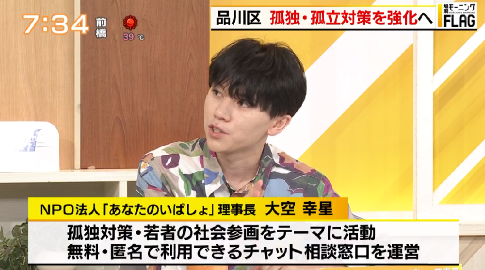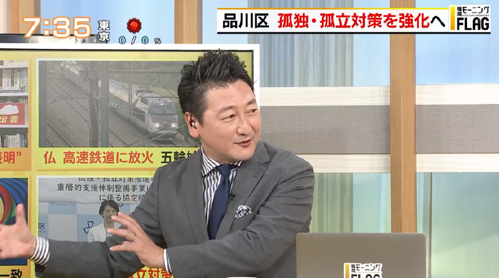 TOKYO MX(地上波9ch)朝の報道・情報生番組「堀潤モーニングFLAG」(毎週月~金曜6:59~)。「FLAG NEWS」のコーナーでは、品川区が強化する“孤独・孤立対策”について取り上げました。