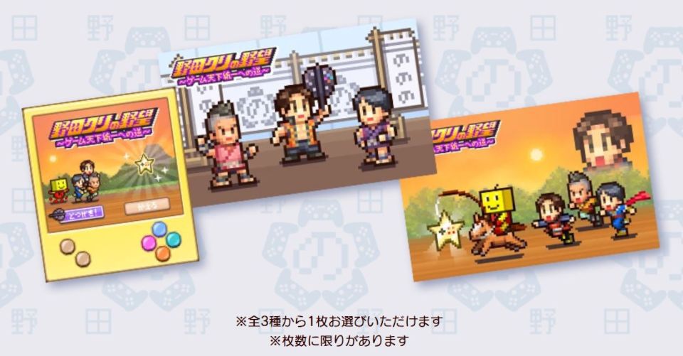 青木マッチョさん、しんやさんをはじめ、“ゲーム×筋肉”を矜持とする野田軍きっての筋肉家臣たちが、“筋肉騎馬”となってあなたを入隊へ誘います!参加者は筋肉騎馬での記念写真が撮影可能。さらに、「野田クリの野望×カイロソフト」オリジナルステッカーを全3種の中から1枚プレゼントします。