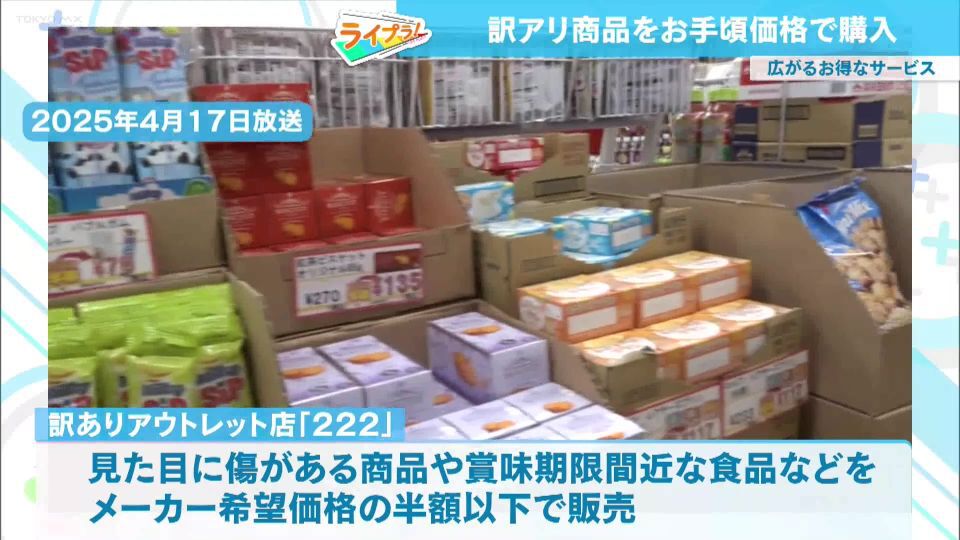 TOKYO MX(地上波9ch)朝の情報生番組「おはリナ!」。「ライプラ!」のコーナーでは、物価高のなかで注目を集める“訳あり商品”について取り上げました。