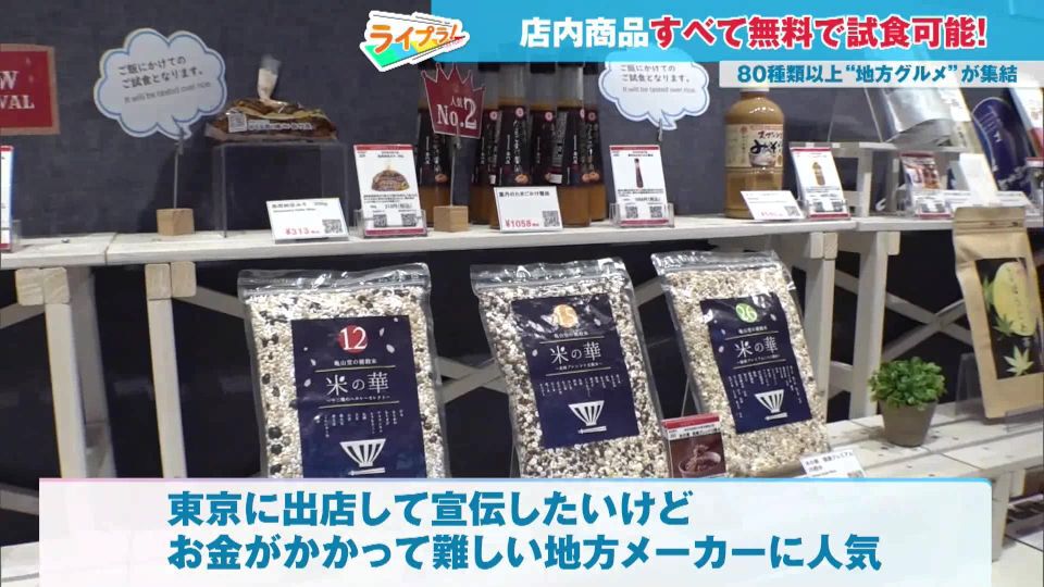 なお、店内の商品は、地方のメーカーのものがほとんど。東京で商品を宣伝したいものの、出店するとなると莫大なお金がかかって難しいという地方のメーカーに人気だとか。