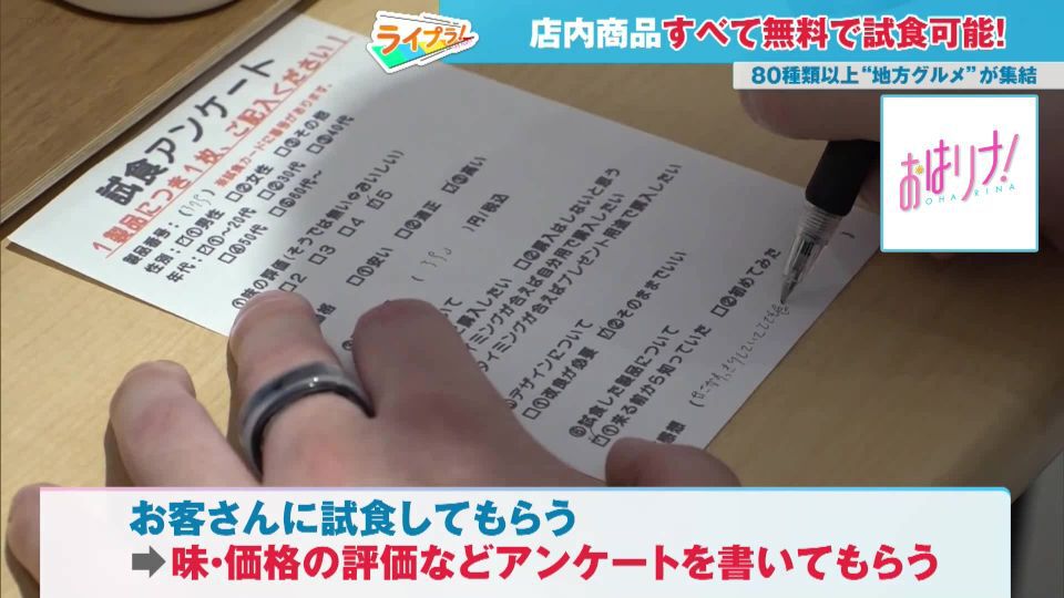 もちろん試食したからといって購入する必要はありません。こちらはお客さんに試食してもらい、味や価格の評価などアンケートを書いてもらうことが目的。メグダイ役員・鈴木さんは「メーカーにはここに出店いただく場所代とアンケートを書いていただき、店舗で販売した商品の売り上げは100%メーカーに渡しています」とその仕組みを明かします。