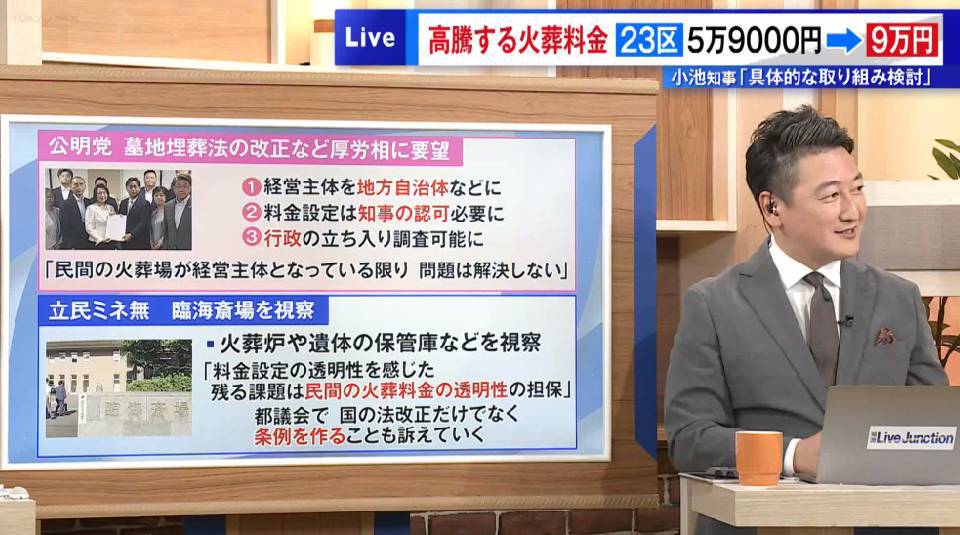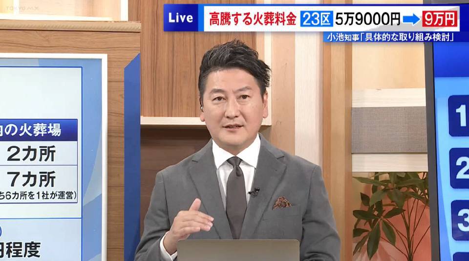 TOKYO MX(地上波9ch)の報道・情報生番組「堀潤 Live Junction」(毎週月~金曜20:00~)。今回の放送では、東京23区内で問題視されている“高騰する火葬料金”について取り上げました。