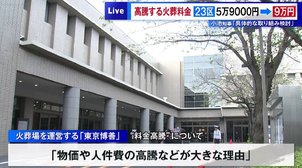 現在、東京・荒川区の民間葬儀場でかかる火葬料金は9万円。全国には無料の自治体も数多くあるなか、23区は突出して高い金額となっています。運営する事業者は「物価や人件費の高騰などが大きな理由」としていますが、都民からは料金の高騰に、戸惑いの声も上がっています。
