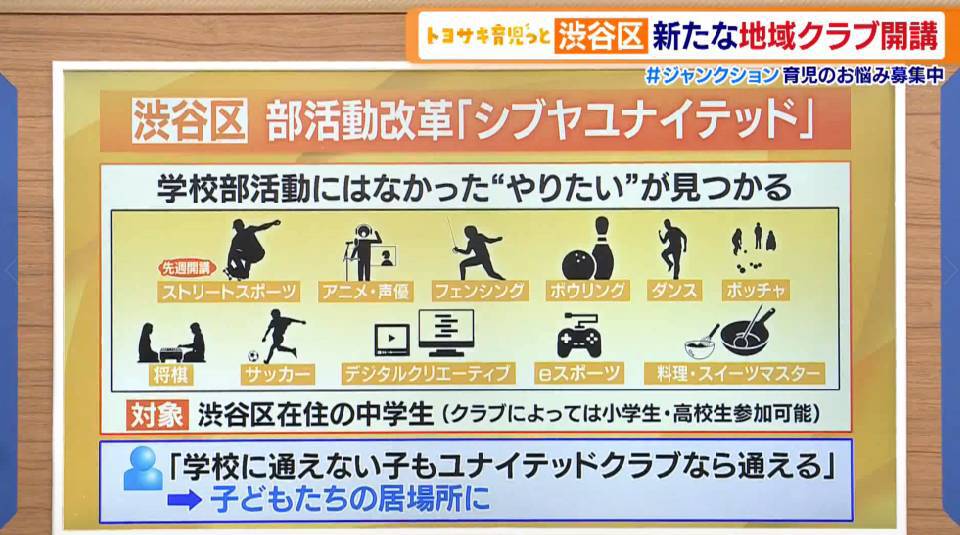 TOKYO MX(地上波9ch)の報道・情報生番組「堀潤 Live Junction」(毎週月~金曜20:00~)。育児の悩みを解決に導く「トヨサキ育児っと」のコーナーでは、“部活動の地域移行”について取り上げました。