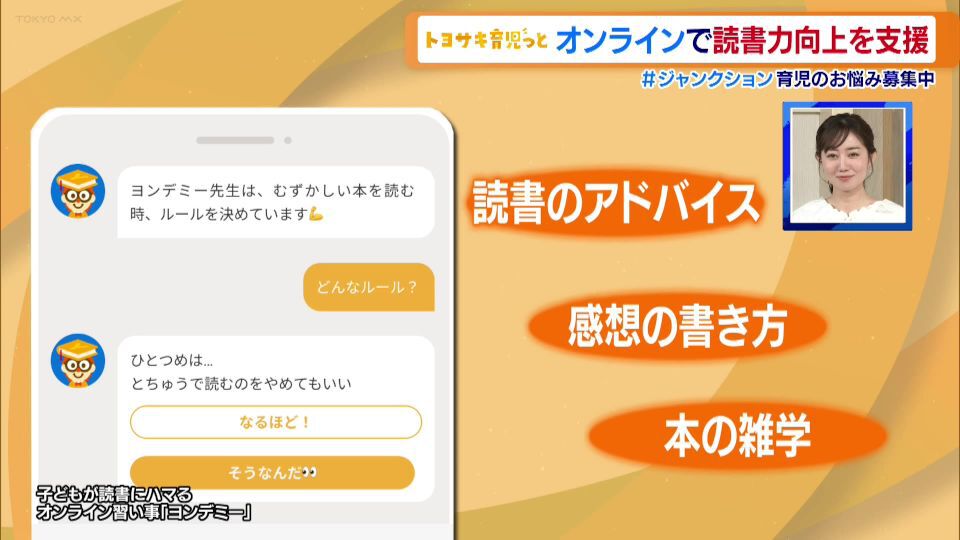 TOKYO MX(地上波9ch)の報道・情報生番組「堀潤 Live Junction」(毎週月~金曜20:00~)。育児の悩みを解決に導く「トヨサキ育児っと」のコーナーでは、二極化している“子どもの読書力”について取り上げました。