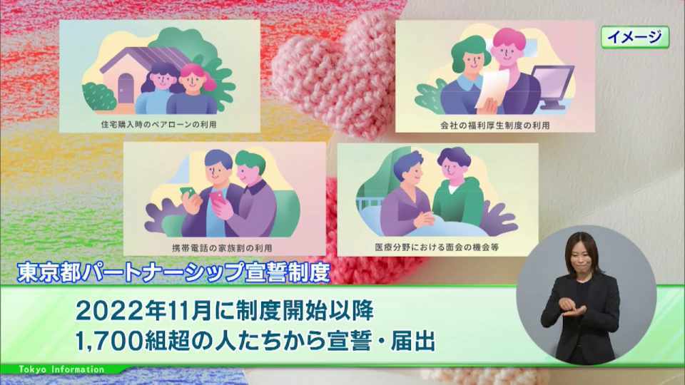 都では、制度の導入をきっかけに、よりいっそう、多様な性に対する理解を広めるとともに、2人の生活上の困りごとの軽減など、暮らしやすい環境づくりにつなげるとしています。