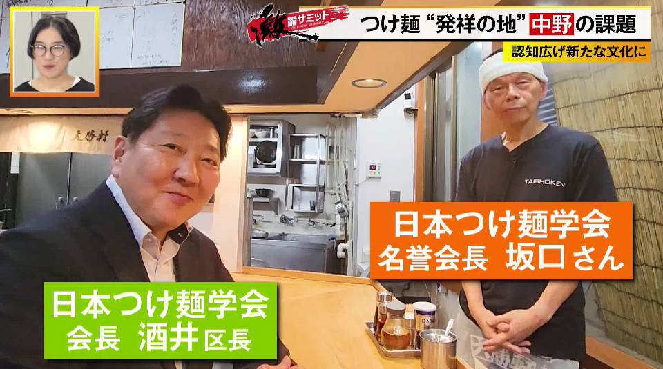 現在の中野区・酒井直人区長は大のつけ麺好きで、その魅力を世界に伝えるべく2023年に「日本つけ麺学会」を設立。酒井区長が会長、中野大勝軒の現大将・坂口光男さんが名誉会長をつとめ、番組放送時の会員数は552人。日々、つけ麺の研究や普及活動に取り組んでいます。