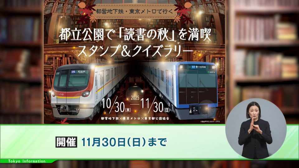 「都営地下鉄・東京メトロで行く 都立公園で『読書の秋』を満喫スタンプ&クイズラリー」は、11月30日(日)まで開催中です。