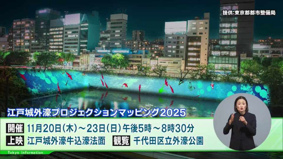 また、20日(木)~23日(日)の4日間、江戸城外濠牛込濠法面では、「江戸城外濠プロジェクションマッピング2025」が実施されます。