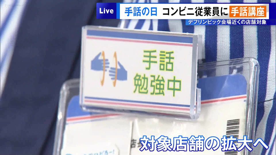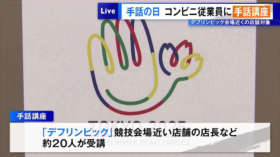 9月23日の「手話の日」を前にコンビニエンスストア大手「LAWSON」は店舗従業員に向けた手話講座を開催しました。今回受講したのは、聴覚障害者の国際スポーツ大会「東京2025デフリンピック」(11月15日(土)〜11月26日(水)) の競技会場に近い店舗の店長など約20名。