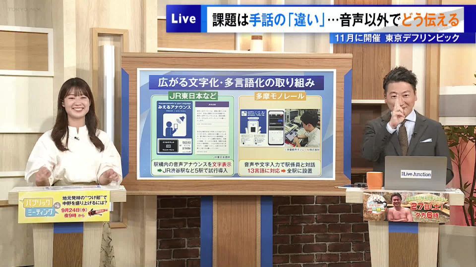 TOKYO MX(地上波9ch)の報道・情報生番組「堀潤 Live Junction」(毎週月~金曜20:00~)。放送では、11月15日に開幕する「東京2025デフリンピック」に向けて、 “手話”における現状の課題について取り上げました。