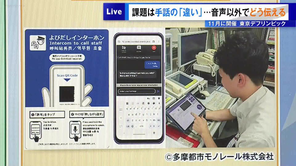 また、多摩モノレールでは駅の係員とのやりとりを音声だけでなく文字入力できるようにし、さらには英語や中国語など13ヵ国の言葉に翻訳できるよう9月から全駅で運用しています。