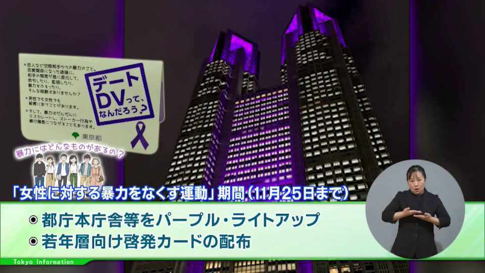 都は、11月25日までの「女性に対する暴力をなくす運動」期間に、さまざまな取組を実施しています。