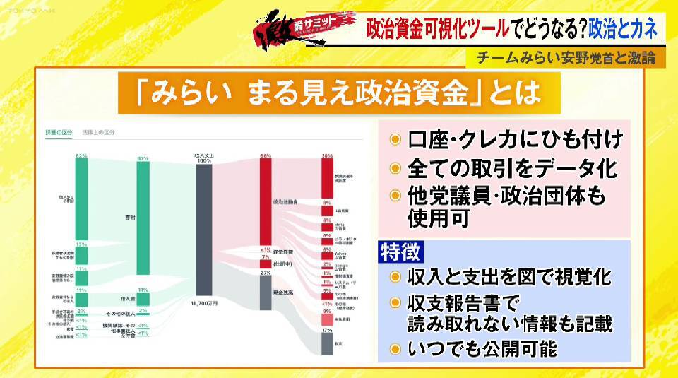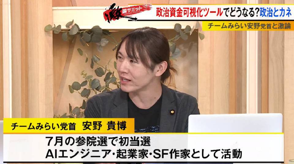 果たして今回のツールで政治資金の透明化は本当に進むのか、活用を広めるには何が必要なのか。チームみらい 安野党首とともに“政治資金透明化に向けた取り組み”について徹底議論します。