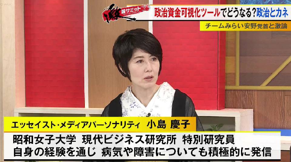 エッセイストでメディアパーソナリティの小島慶子さんは、「今までは、(政治資金がらみの)問題が起きると、本当はそのお金の使い方を決めた人は他にいたはずなのに、全部会計責任者が責任を問われて、その尻拭いをさせて終わりみたいに、蓋をされがちだったので、最初から属人的なものではなくて、全てこのように誰でもアクセスできる形で透明化されているとすごく分かりやすい」と大きく頷きます。