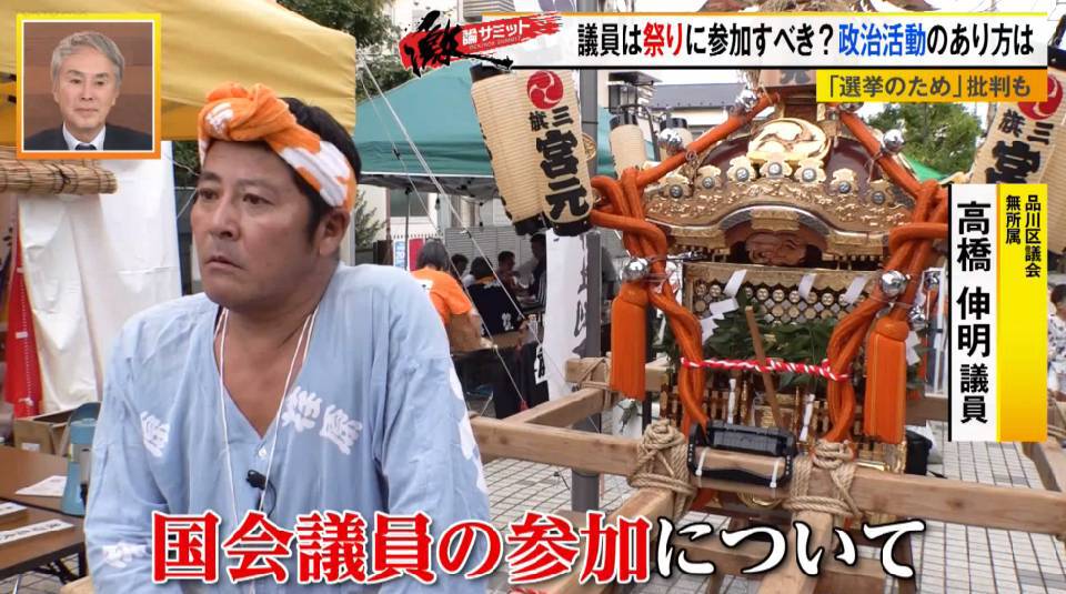 一方、国会議員のお祭り参加を地方議員はどう見ているのか。長年、地元の祭りに参加し、今では運営側でもある品川区議会の高橋伸明議員(無所属)に話を聞いてみると「地域と繋がりの深い地方議員が祭りに参加するのは当たり前。(国会議員も)地元の地域の祭りには顔を出すのは問題ない、むしろやるべき」と肯定的する傍ら、票集めの側面があるとも。