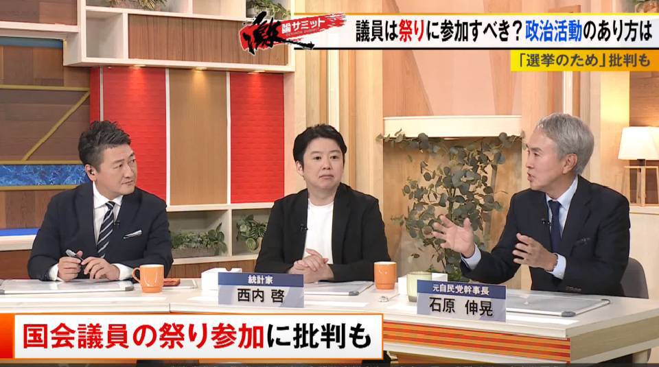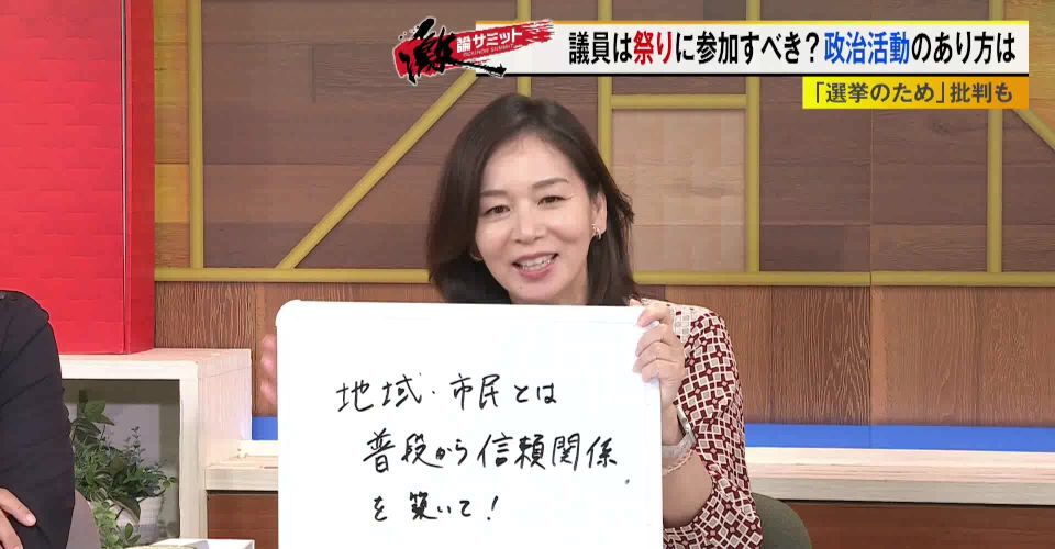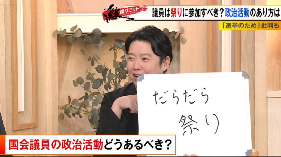 また、脳科学者で理学博士の茂木健一郎さんからは「政治は“政(まつりごと)”というが、(議員がお祭りに参加することで)本質的に何か大事なことがあるんだと思う」との意見もありました。