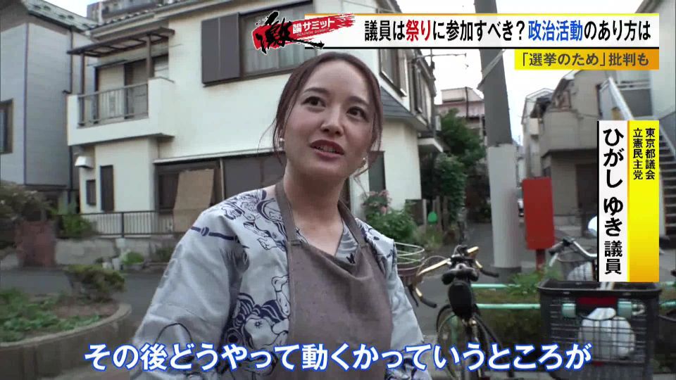 また、高橋区議と同じく地域住民のひとりとしてお祭りに参加している東京都議会のひがしゆき議員(立憲民主党)も、国会議員のお祭り参加には一定の意義があるとし、「国会議員は遠い存在のように感じるが、地元に来て、挨拶をしていくなかで交流が生まれたり、顔を覚えてもらうことで困ったことがあったときに『あの人に相談しよう』と思い出してもらえる。お祭りだけでなく、その後どうやって動くのかが大切」と話します。