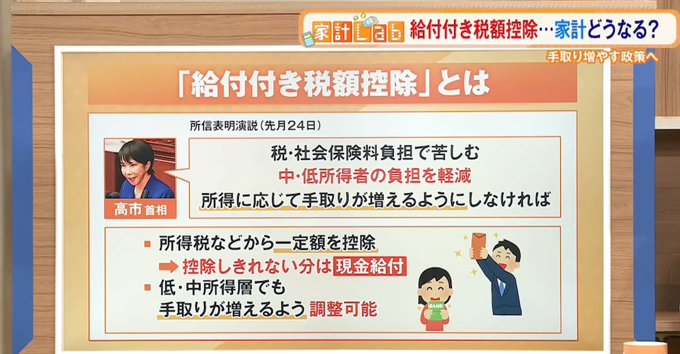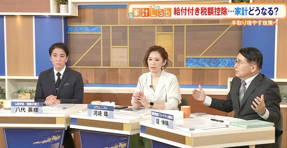 TOKYO MX(地上波9ch)の報道・情報生番組「堀潤 Live Junction」(毎週月~金曜20:00~)。家計に関するお金のニュースを深掘りする「豊崎由里絵の家計Lab」のコーナーでは、高市総理肝入りの物価高対策のひとつ“給付付き税額控除”について取り上げました。