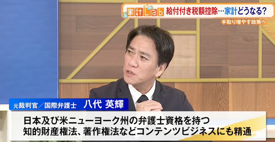 元裁判官で国際弁護士の八代英輝さんも「(給付付き税額控除は)いろいろな負担の壁を解消する非常に有効な策だと思う」と評価し、導入する上でのポイントに言及。