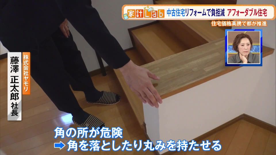 また、アフォーダブル住宅は子育て世帯に手頃な家賃で住宅を提供することを目的としているため、リフォームに際しても子どもと暮らしやすい工夫がなされているとか。「(階段の)手すりも例えば隙間を埋めてあげて、お子様が安全に降りられるようにしてあげたり、あとは角のところが危険なので、角を落とし、丸みを持たせてあげるような工夫もしている」と藤澤社長。