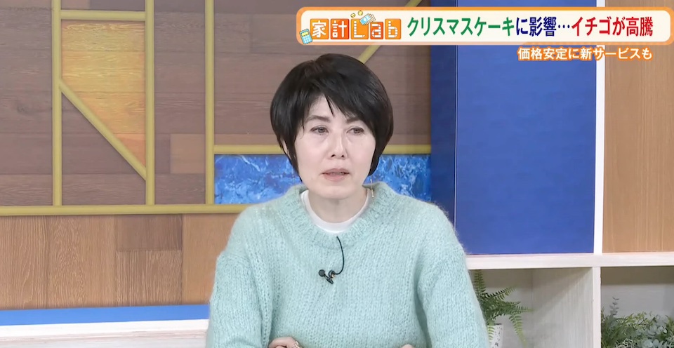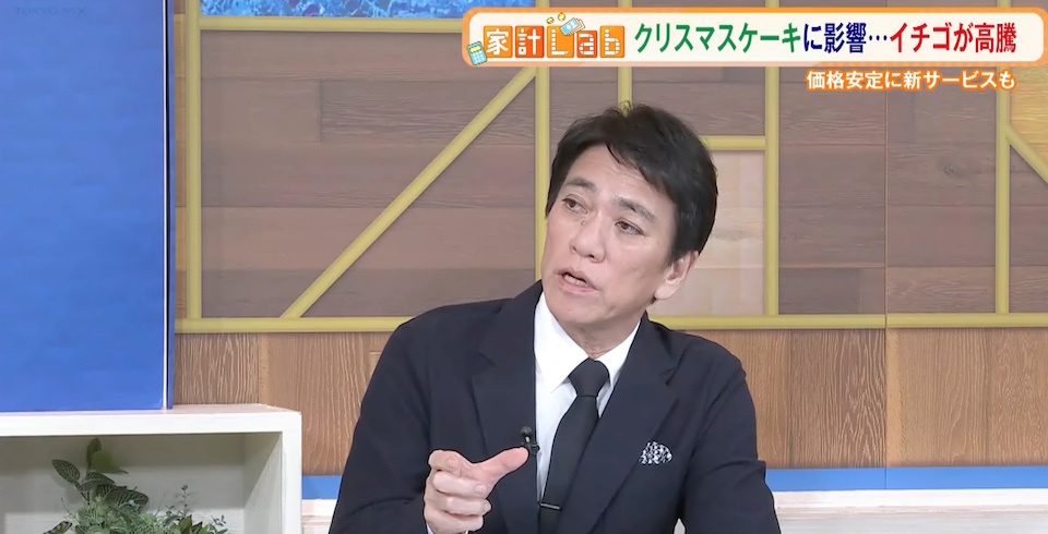 キャスターの堀潤は「農業DXはまだまだ可能性がありますね」と今後のさらなる発展に期待していましたが、かたやキャスターの豊崎由里絵は「イチゴは暑さに弱く寒暖差が必要で(生育のサイクルが)ずれ込んでいる。かといってクリスマスの時期は変えられない。そうすると来年、再来年のサイクルもどうするんだという話に……」と来年以降の動向を案じます。