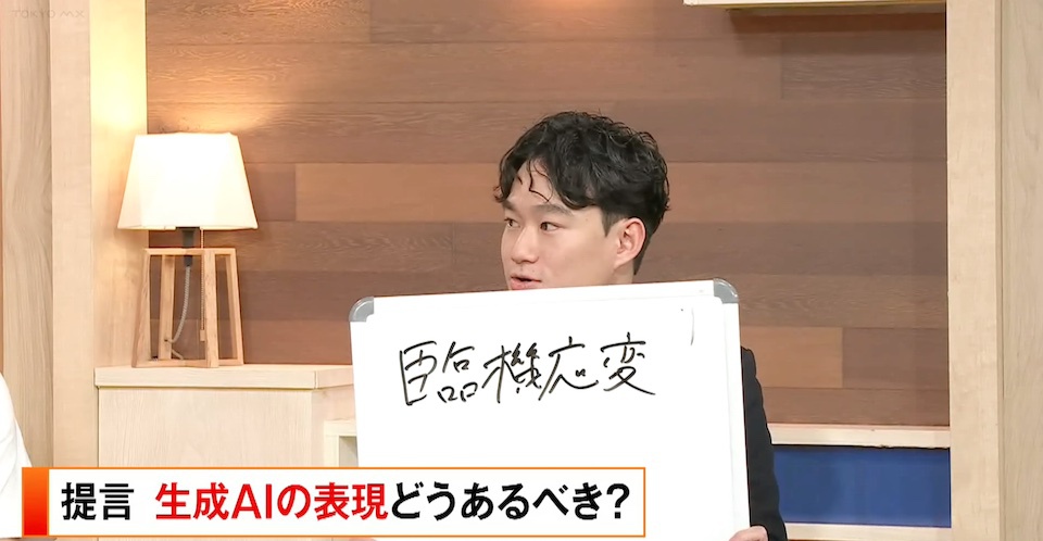 TOKYO MX(地上波9ch)の報道・情報生番組「堀潤激論サミット」(毎週月~金曜21:00~)。放送では、生成AIによる表現の許容点について議論しました。