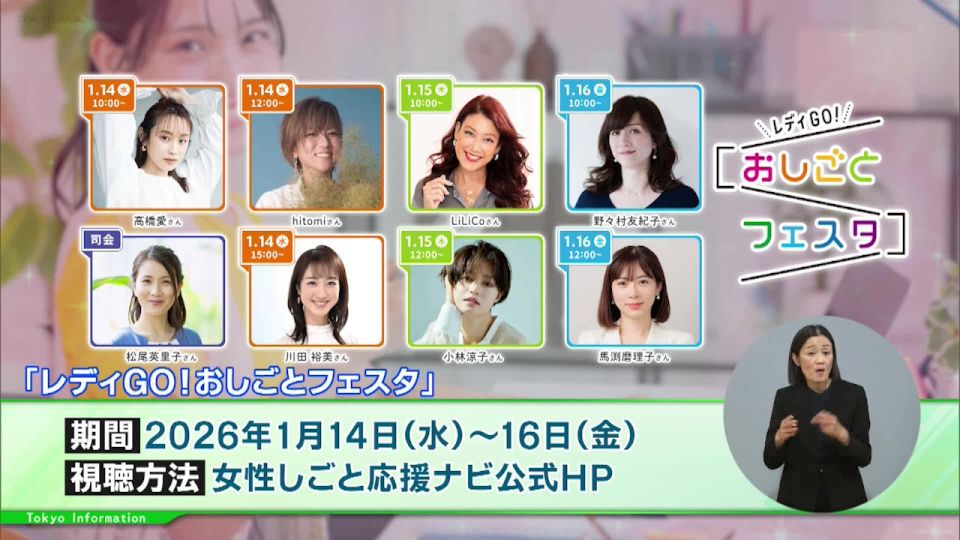 2026年1月14日(水)~16日(金)の午前10時~午後5時までで、「女性しごと応援ナビ」公式サイトから、誰でも視聴できます。また、開催後は、アーカイブ配信も実施する予定です。