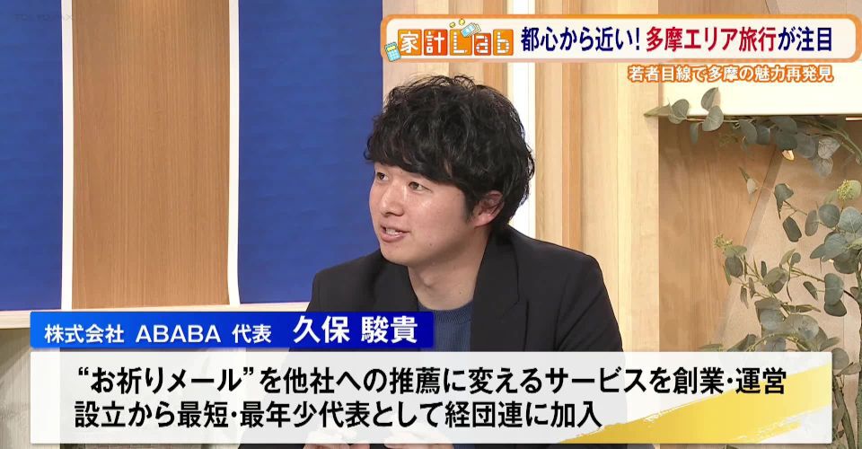 一方、株式会社ABABA代表の久保駿貴さんも「多摩はおすすめですね」と同意し、「僕はサウナによく行くのですが、多摩地域には結構新しくオープンした施設や、古民家を改装したサウナなどがあります。カップルでも楽しめるでしょうし、あとは焚き火ができる施設もあります」と、若者やカップル向けの新しいスポットが増えていることに触れ、スタジオの面々も興味津々の様子でした。