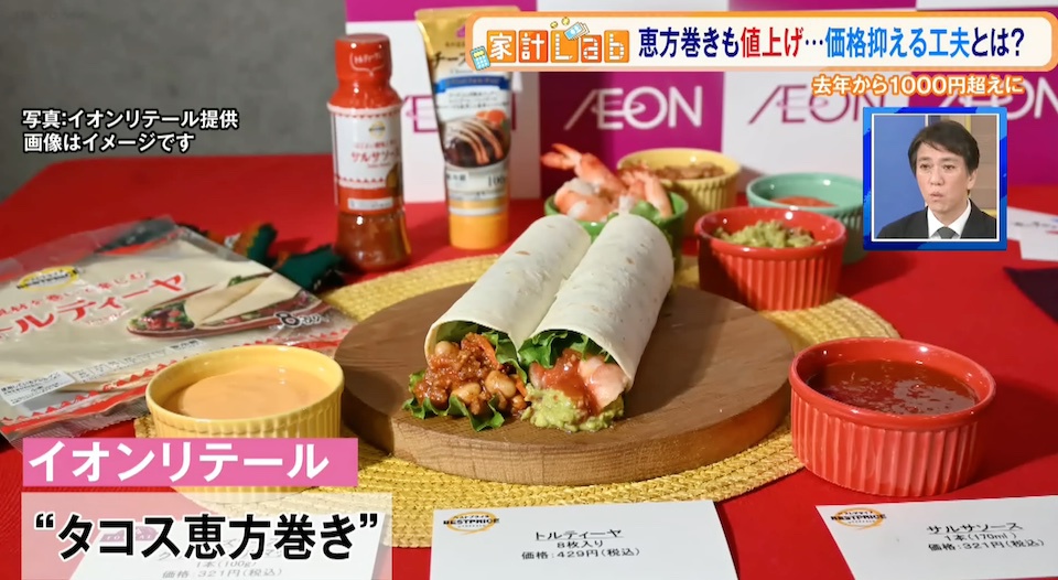 さらに、イオンからは恵方巻きの常識を覆す商品も。それは、お米やのりを使わずに具材をトルティーヤで巻いた「タコス恵方巻き」。自由な発想で好みの具材を巻くことで恵方巻きの雰囲気を楽しむことができるとか。