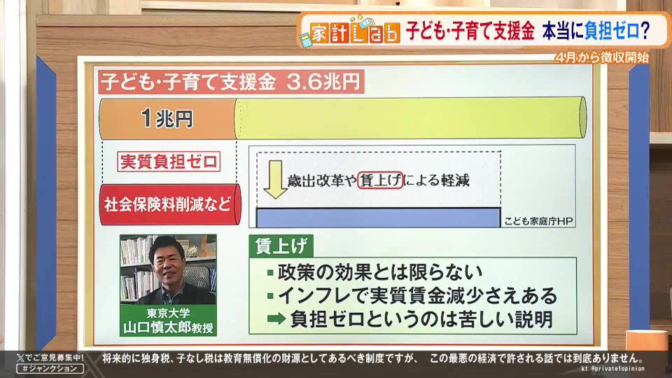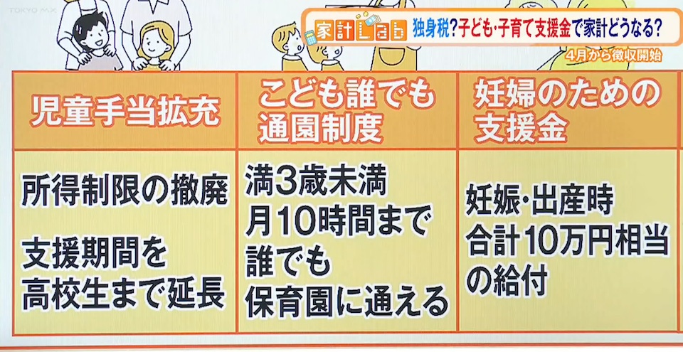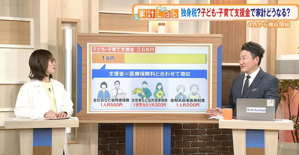 TOKYO MX(地上波9ch)の報道・情報生番組「堀潤 Live Junction」(毎週月~金曜20:00~)。家計に関するお金のニュースを深掘りする「豊崎由里絵の家計Lab」のコーナーでは、“子ども・子育て支援金制度”について取り上げました。