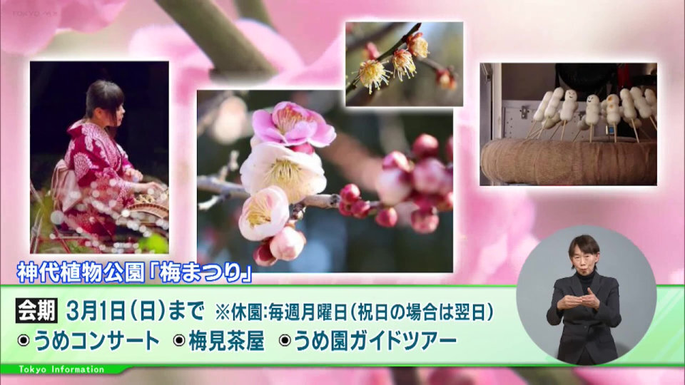 「梅まつり」は、園内のうめ園などで3月1日(日)まで開かれています。「うめコンサート」や「梅見茶屋」、ガイドボランティアによる「うめ園ガイドツアー」が行われます。