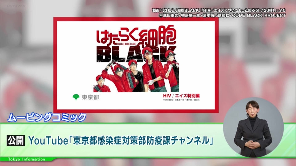 都では、人気漫画「はたらく細胞BLACK」とコラボし、特に感染者が多い若年層を中心に、正しい情報や検査受診を呼びかけるためのムービングコミックを作成しました。ムービングコミックは、YouTubeの東京都感染症対策部防疫課チャンネルで公開されています。