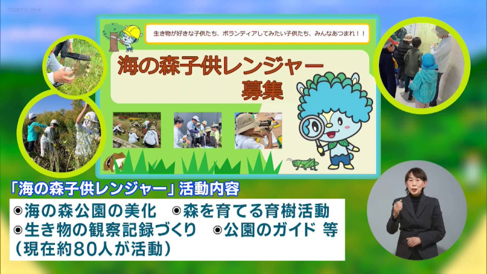募集は、2026年4月時点で小学2年生~中学2年生で、原則、年間2回以上、活動できるなどの要件を満たす50人程度です。4月~9月に月1回程度、開かれる養成研修を経て、「海の森子供レンジャー」に認定されます。参加を希望する人は、3月1日(日)までにウェブサイトからお申し込みください。応募者多数の場合は抽選です。