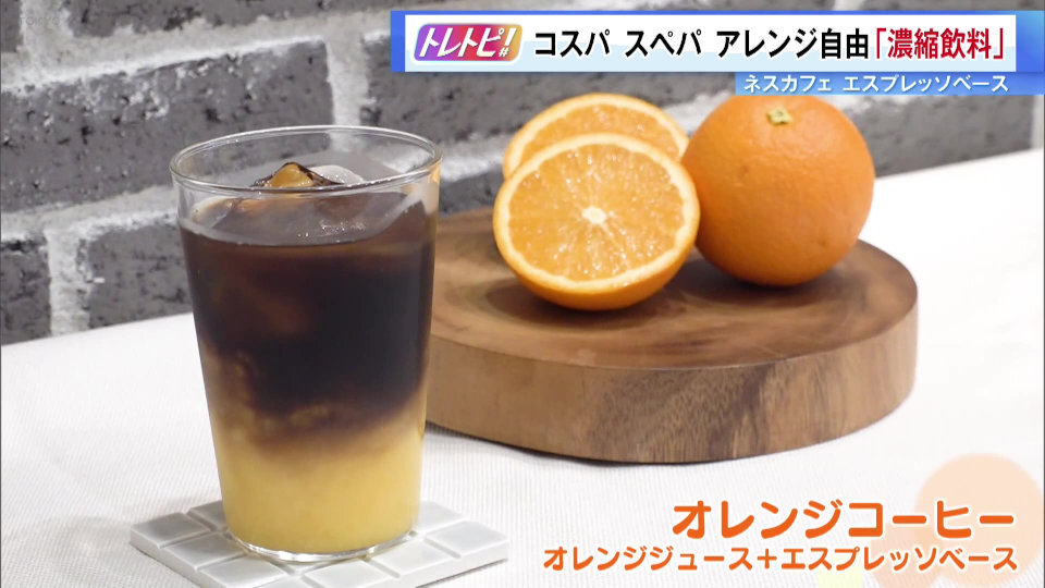 さらに、オレンジジュースを入れてその上からエスプレッソベースを注ぐと、爽やかな「オレンジコーヒー」が完成します。
